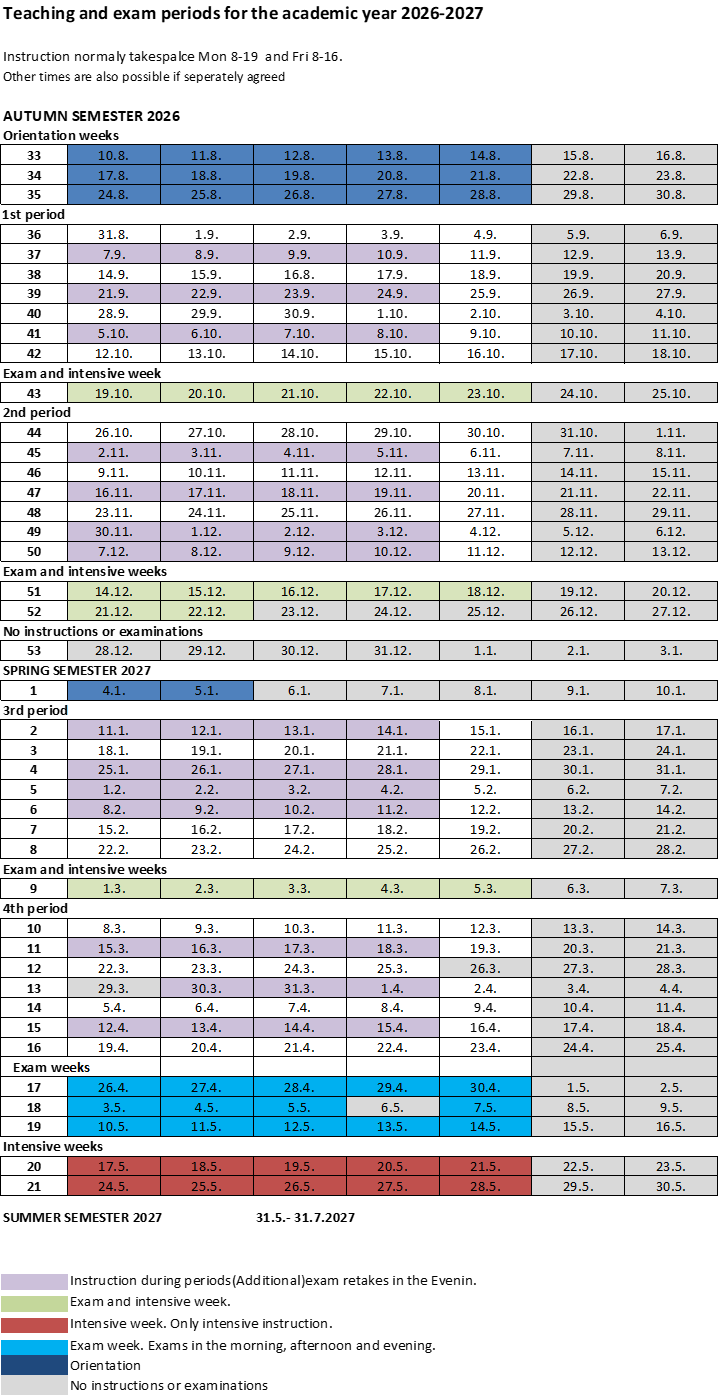 No instructions or examinations week 53 (28.12.2026 – 1.1.2027)