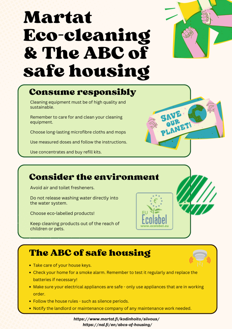 The Martha Association (Martat) has numerous instructions and tips for household and cleaning, as well as some services for immigrants and integration. Read more from Martat website.