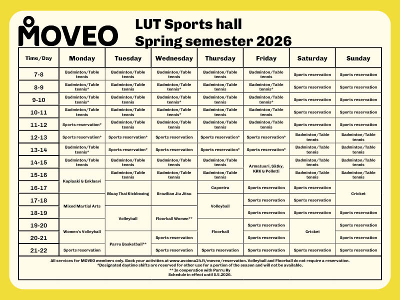 Note! MOVEO offers remote and break exercise classes with Zoom. Classes are open and free of charge for all students. More information on MOVEO main page.