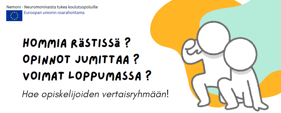 Vertaisryhmä tapaamisia opiskelijalähtöisesti joka toinen maanantai klo 14-16 (Lahti ja Lappeenranta).