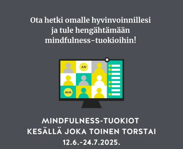 Ota hetki omalle hyvinvoinnillesi ja tule hengähtämään kesän Mindfulness-tuokioihin 19.05.2025 (julkaisupäivämäärä) Kategoria Opiskelijoiden tuki- ja hyvinvointipalvelut
